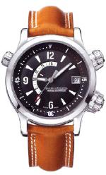 Größe: Herren, Kaliber 918, Mechanisches Uhrwerk mit Automatikaufzug, Gehäuse Stahl, 41,5mm Durchmesser, Saphirglas, Armband aus Kalbsleder mit Faltschließe, Funktionen: Stunde, Minute, Sekunde aus der Mitte, Datum, Wecker, 100m Wasserdicht, Volle Hersteller-Garantie für 2 Jahre