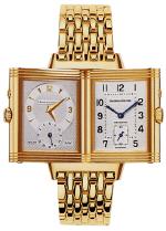Größe: Herren, Kaliber 854, Mechanisches Uhrwerk mit Handaufzug, Gehäuse 18 Karat Gelbgold, Grande Taille-Format, Drehbar, Saphirglas, Armband 18 Karat Gelbgold mit Faltschließe, Funktionen: Stunde, Minute, kleine Sekunde, zweite Zeitzone, Volle Hersteller-Garantie für 2 Jahre