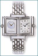 Jaeger LeCoultre Reverso Duetto (266.81.20) Größe: Damen, Kaliber 844, Mechanisches Uhrwerk mit Handaufzug, Gehäuse Stahl, Edelsteinbesatz mit 32 Diamanten (~0,22 Karat), Damengröße, Drehbar, Saphirglas, Armband aus Stahl mit Faltschließe, Funktionen: Stunde, Minute, zweite Zeitzone,.... 4.198,00 EUR