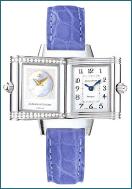 Jaeger LeCoultre Reverso Duetto (266.84.20) Größe: Damen, Kaliber 844, Mechanisches Uhrwerk mit Handaufzug, Gehäuse Stahl, Edelsteinbesatz mit 32 Diamanten (~0,22 Karat), Damengröße, Drehbar, Saphirglas, Armband aus Alligatorleder mit Faltschließe, Funktionen: Stunde, Minute, zweite Zeitzone,.... 3.798,00 EUR