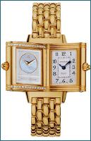 Jaeger LeCoultre Reverso Duetto (266.11.20) Größe: Damen, Kaliber 844, Mechanisches Uhrwerk mit Handaufzug, Gehäuse 18 Karat Gelbgold, Edelsteinbesatz mit 32 Diamanten (~0,22 Karat), Damengröße, Drehbar, Saphirglas, Armband aus 18 Karat Gelbgold mit Faltschließe, Funktionen: Stunde, Minute, zweite Zeitzone,.... 12.900,00 EUR