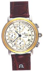 Größe: Herren, Kaliber ML67, Mechanisches Uhrwerk mit Automatikaufzug, Gehäuse Stahl/Gold, 40mm Durchmesser, Saphirglas, Armband aus Alligatorleder, Funktionen: Stunde, Minute, Sekunde aus der Mitte, Datum, Wochentag, Chronograph, 50m Wasserdicht, Volle Hersteller-Garantie für 2 Jahre