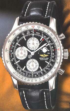 Größe: Herren, Kaliber 19, Mechanisches Uhrwerk mit Automatikaufzug, Gehäuse Stahl, 43mm Durchmesser, Saphirglas, Armband aus Alligatorleder mit Faltschließe, Funktionen: Stunde, Minute, Sekunde aus der Mitte, Datum, Chronograph, Schaltjahrkalender (Tag, Monat, Mondphasen), Boden verschraubt, Wasserdicht bis 3 Bar, Volle Hersteller-Garantie für 2 Jahre