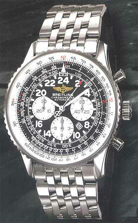 Größe: Herren, Kaliber 22, Mechanisches Uhrwerk mit Automatikaufzug, Gehäuse Stahl, 41,50mm Durchmesser, Saphirglas, Navitimerband Stahl, Funktionen: Stunde, Minute, Sekunde aus der Mitte, Datum, Chronograph, Flyback-Funktion, Boden verschraubt, Wasserdicht bis 3 Bar, Volle Hersteller-Garantie für 2 Jahre