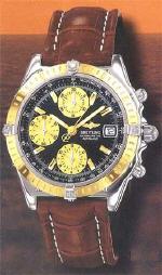 Größe: Herren, Kaliber 13, Mechanisches Uhrwerk mit Automatikaufzug, Gehäuse Stahl/Gold, 39mm Durchmesser, Saphirglas, Armband aus Alligatorleder mit Faltschließe, Funktionen: Stunde, Minute, Sekunde aus der Mitte, Datum, Chronograph, Boden verschraubt, Wasserdicht bis 100m, Volle Hersteller-Garantie für 2 Jahre