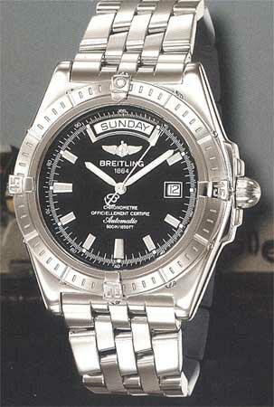 Größe: Herren, Kaliber 45, Mechanisches Uhrwerk mit Automatikaufzug, Gehäuse Stahl, 43,7mm Durchmesser, Saphirglas, Pilotband Stahl, Funktionen: Stunde, Minute, Sekunde aus der Mitte, Datum, Wochentag, Boden verschraubt, Wasserdicht bis 500m, Volle Hersteller-Garantie für 2 Jahre