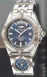 Größe: Herren, Kaliber 45, Mechanisches Uhrwerk mit Automatikaufzug, Gehäuse Stahl, 43,7mm Durchmesser, Saphirglas, Pilotband Stahl, Funktionen: Stunde, Minute, Sekunde aus der Mitte, Datum, Wochentag, UTC-Zusatzuhr, Boden verschraubt, Wasserdicht bis 500m, Volle Hersteller-Garantie für 2 Jahre