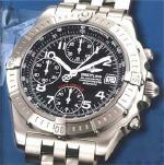 Größe: Herren, Kaliber 13, Mechanisches Uhrwerk mit Automatikaufzug, Gehäuse Stahl, 39,8mm Durchmesser, Saphirglas, Pilotband Stahl, Funktionen: Stunde, Minute, Sekunde aus der Mitte, Datum, Chronograph, Boden verschraubt, Wasserdicht bis 100m, Volle Hersteller-Garantie für 2 Jahre