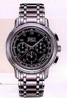 Größe: Herren, Kaliber 410, Mechanisches Uhrwerk mit Automatikaufzug, Gehäuse Stahl, 40mm Durchmesser, guillochiertes schwarzes Zifferblatt, Saphirglas, Armband aus Stahl mit Faltschließe, Funktionen: Stunde, Minute, Sekunde aus der Mitte, Datum, Wochentag, Monat, Chronograph, Mondphase, Saphirglasboden, 30m Wasserdicht, Volle Hersteller-Garantie für 2 Jahre